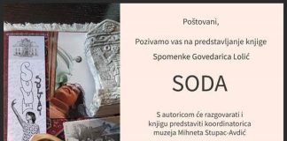 Poziv na promociju knjige knjige „Soda“ autorice Spomenke Govedarica Lolić
